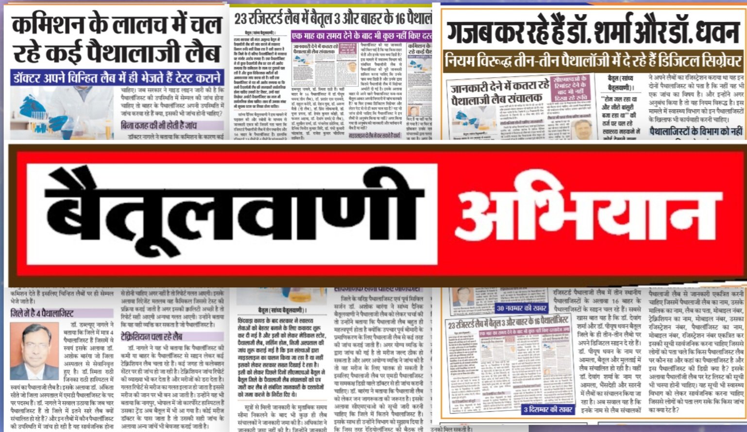 सांध्य दैनिक बैतूलवाणी के अभियान की धमक दिखाई देने लगी है। भले ही स्वास्थ्य विभाग ने अभी तक कोई कार्यवाही नहीं की हो लेकिन कुछ पैथालॉजी लैब संचालक अपनी लैब को अस्थायी रूप से बंद करने के आवेदन देने लगे हैं। जानकारी मिली है कि मुलताई के किसी लैब संचालक ने सीएमएचओ कार्यालय में आवेदन देकर पैथालॉजिस्ट से अनुबंध खत्म होने का उल्लेख करते हुए अपनी लैब को अस्थायी रूप से बंद करने का आवेदन दिया है। हालांकि इस आवेदन को लेकर स्वास्थ्य विभाग के अधिकारियों से चर्चा नहीं होने के कारण उनका पक्ष सामने नहीं आया है।