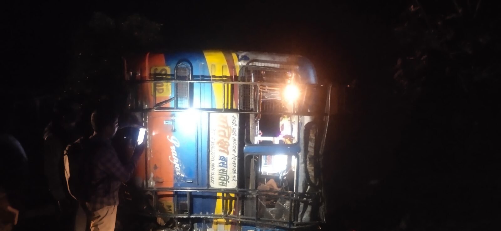 Big breaking:खड़ी बस को डंपर ने टक्कर मारी,बस पलटी,32 घायल