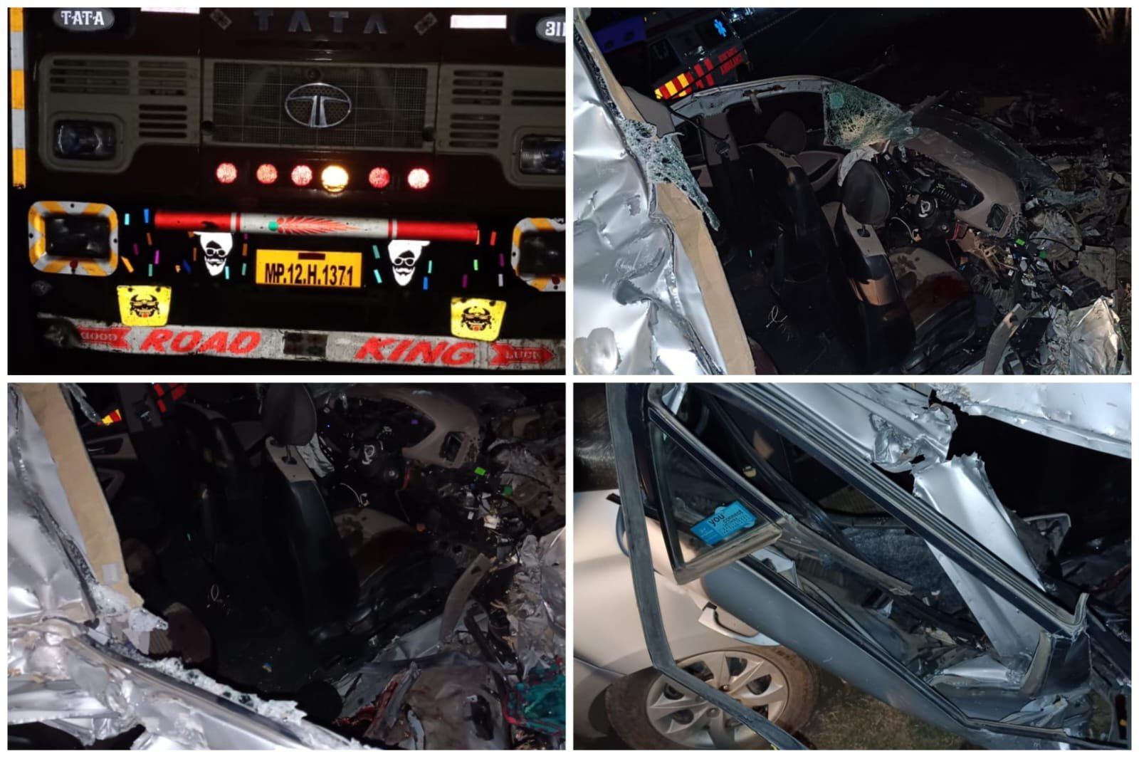 मुलताई थाना प्रभारी सुनील लाटा ने बताया कि शुक्रवार की रात्रि लगभग साढ़े 12 बजे मुलताई की ओर जा रही कार क्रमांक हुंडई आई 20 स्पोर्ट एमपी 48 सी 7993 के आगे ट्रक क्रमांक एमपी 12 एच 1371 जा रहा था। अचानक ही ट्रक चालक ने राइट से लेफ्ट में ट्रक को चलाने लगा जिससे पीछे जा रही कार अनियंत्रित होकर ट्रक के पीछे घुस गई। इस दुर्घटना में डोडरामोहार स्टेशन पर पदस्थ रेलवे के सेक्शन इंजीनियर (ट्रेक) संजीवकांत भगत(48), रेलवे में ट्रेक मेन में पद पर पदस्थ राजकुमार सिसोदिया(32) निवासी आमाबघोली मुलताई, शीतल बारंगे (35), विमला बारंगे (52) निवासी डहुआ की मौत हो गई। तीन शवों के पोस्टमार्टम मुलताई में कराकर परिजनों को सौंप दिए हैं। वहीं संजीव कांत भगत की मौत नागपुर में हुई इसलिए उनका पोस्टमार्टम नागपुर में होगा।
