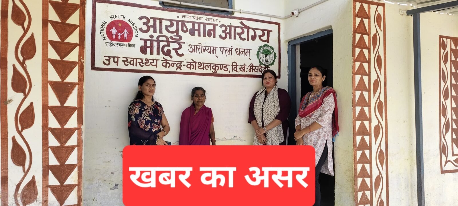कोथलकुण्ड(आशुतोष त्रिवेदी)। कोथलकुंड के उपस्वास्थ्य केंद्र में ताला लगा होने से ग्रामीणों को उपचार के लिए परेशानी का सामना करना पड़ रहा था। इसको लेकर सांध्य दैनिक बैतूलवाणी ने प्रमुखता के साथ स्वास्थ्य केंद्र में ताला लगा होने की खबर प्रकाशित की थी। इसका असर यह हुआ कि अब उपस्वास्थ्य केंद्र खुल गया है। उपस्वास्थ्य केंद्र में एएनएम सहित विभाग के कार्यकर्ता पहुंचे हैं।