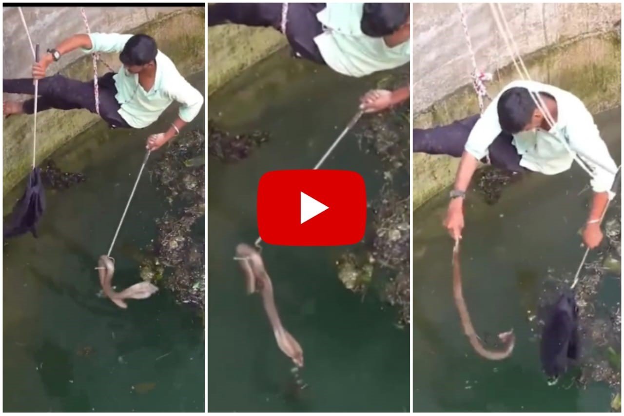 हैरान कर देने वाले इस वीडियो में एक शख्स का कारनाम हर किसी के रोंगटे खड़ा कर रहा है. वीडियो में शख्स कुएं में फंसे किंग कोबरा (King Cobra Snake) को बचाने के लिए खुद अपनी जान जोखिम में डालता नजर आ रहा है. यूं तो इंटरनेट पर अक्सर लोगों को अपनी जान दांव पर लगाकर जीवों को बचाते देखा जाता है, जिसे देखकर किसी की भी हालत खराब होना लाजिमी है. देखा जाये तो रात के समय खाने की तलाश में अक्सर ये जीव इंसानों द्वारा खोदे गए गड्ढों और कुंओं में गिर कर फंस जाते हैं, जिन्हें बाद में कुछ जाबांज लोग अपनी जिंदगी खतरे में डालकर बचाते नजर आते हैं.